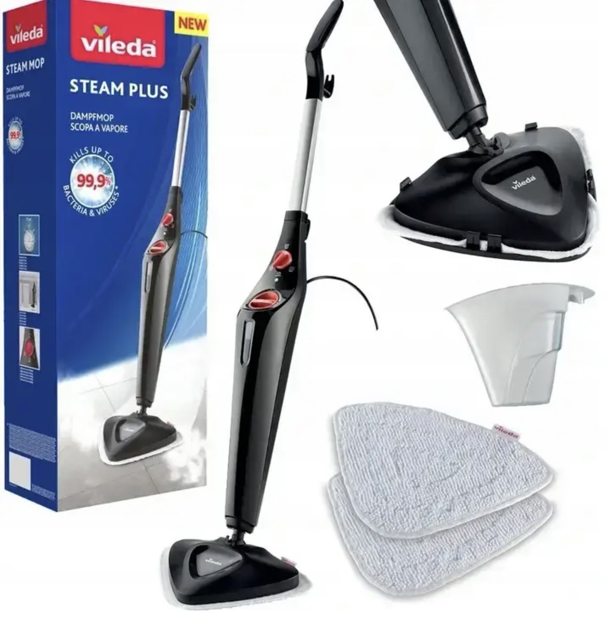 VILEDA Steam Plus характеризується легким і зручним дизайном і трикутною ніжкою , яка дозволяє легко маневрувати і досягати важкодоступних місць, таких як простір під меблями або кути. Ручку швабри можна від'єднати і повісити ззаду , завдяки чому вона легко поміститься, наприклад, в шафі.