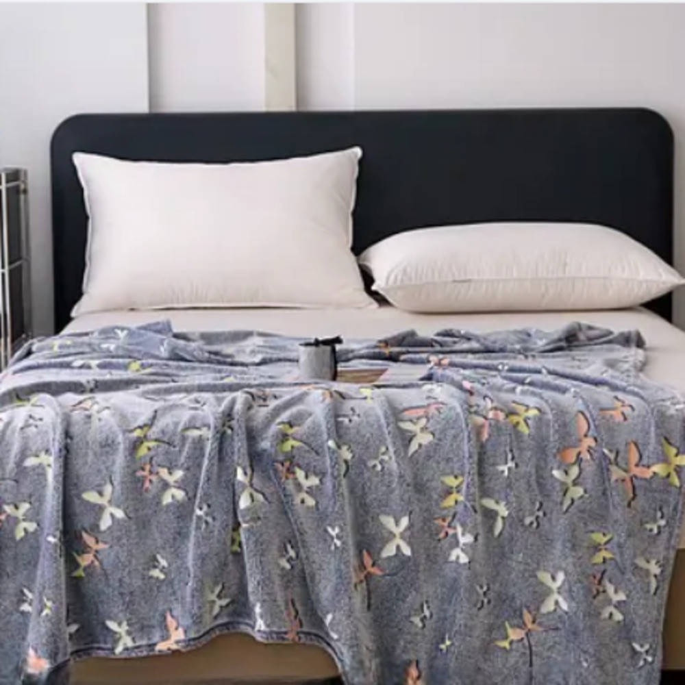 Стильный дизайн подойдёт под любой декор. Очень уютно закутаться в нем на диване. Приятен телу и взгляду, ведь в темноте плед загорается яркими бабочками - это очень красиво и завораживающе.